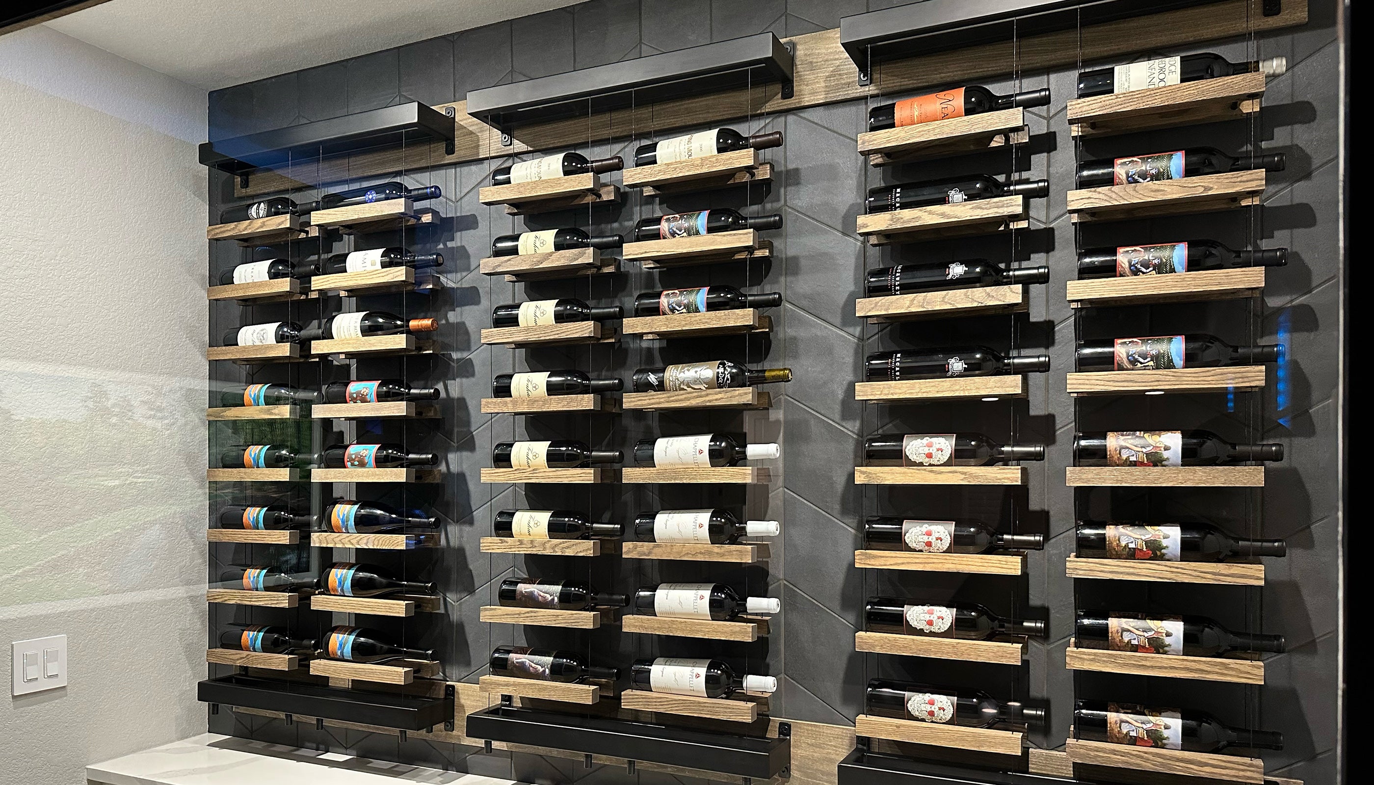The combination of wood and metal offers many possibilities for customizing your own unique wine display. The BUOYANT® system is sturdy, fits into any space and is an ideal wine storage system whether you are a business or a homeowner building a custom wine room, a wine closet, a wine wall or just looking for a beautiful way to display your wine somewhere in your home.